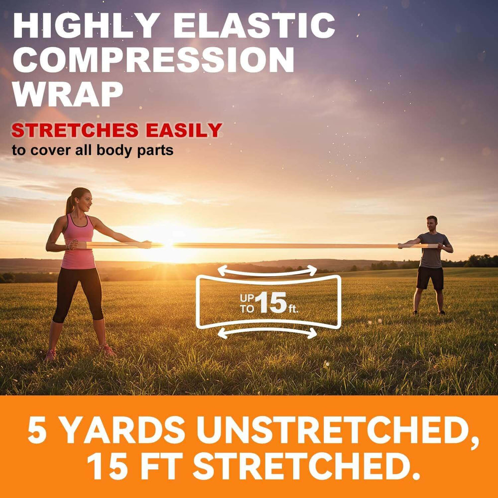 Stretchable Coverage: Each roll measures 5 yards un-stretched and extends up to 15 ft when stretched, offering flexible compression for different needs.