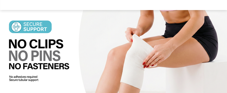 No. The elastic tubular design stays securely in place without clips, pins, or adhesive tape. It provides reliable compression while remaining comfortable on the skin.