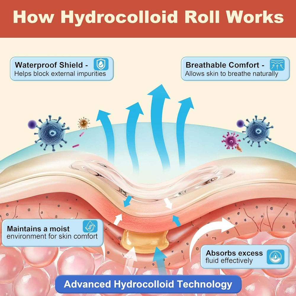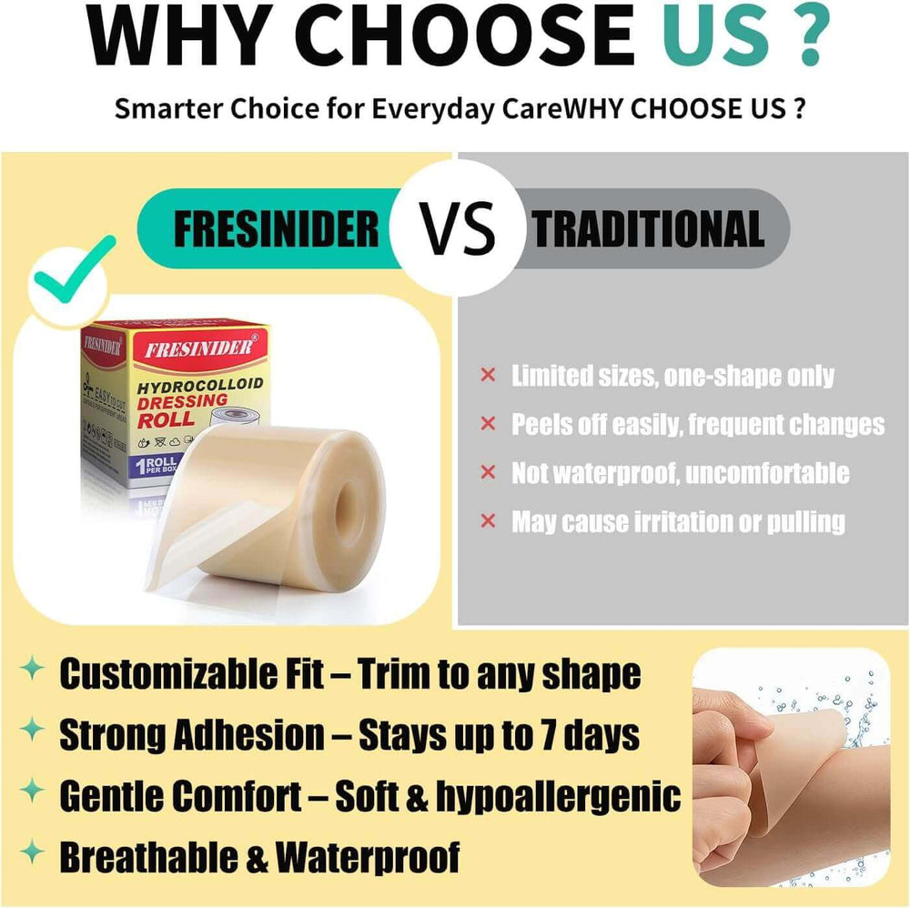 Accelerates Healing Naturally– FRESINIDER hydrocolloid roll forms a gel-like barrier that maintains moisture and protects wounds, promoting faster recovery for blisters, abrasions, and post-surgical care.