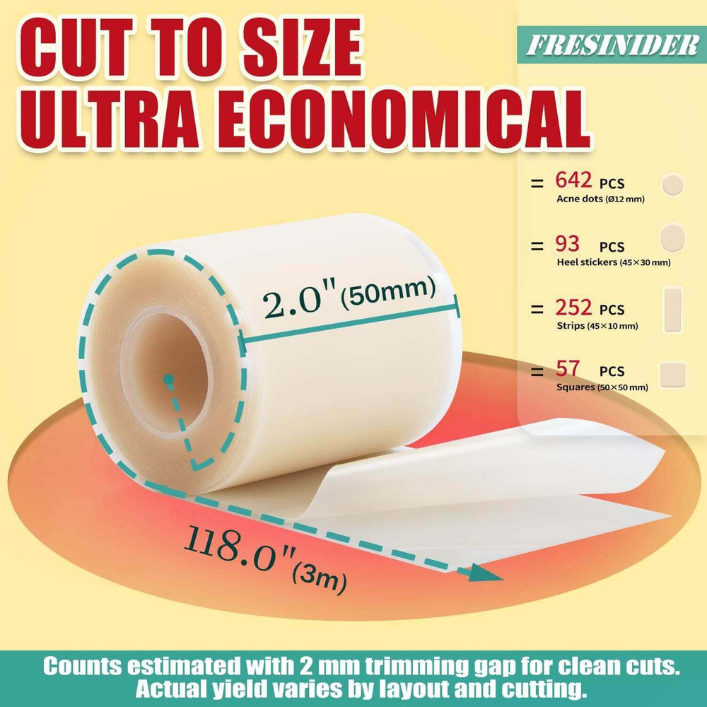 Cut-to-Size, Ultra Economical – One roll offers exceptional value: up to 1,071 acne dots (Ø12mm), 424 strips (45×10mm), or 96 square patches (50×50mm) for versatile DIY coverage. Waterproof, breathable, and flexible for daily use.