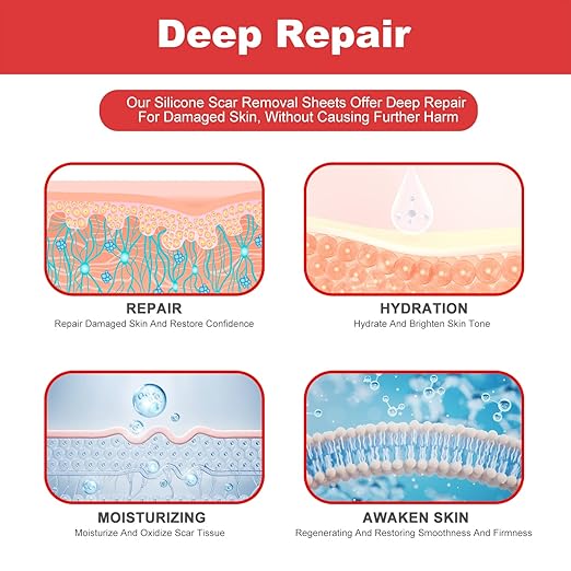 ✅ Easy to Use: Clean and dry the target area before applying the silicone sheet. Cut the silicone tape according to your needs and apply it smoothly on the skin. The acne scar remover sheet can be removed gently and easily without leaving any residue behind.