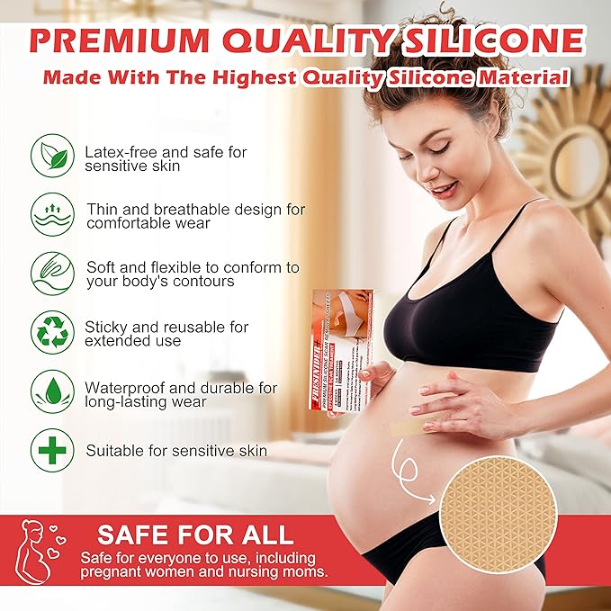 The lightweight silicone scar sheets are made of medical-grade silicone material that is breathable and soft on the skin. You can even wear the tummy tuck tape throughout the day and night under the clothes.